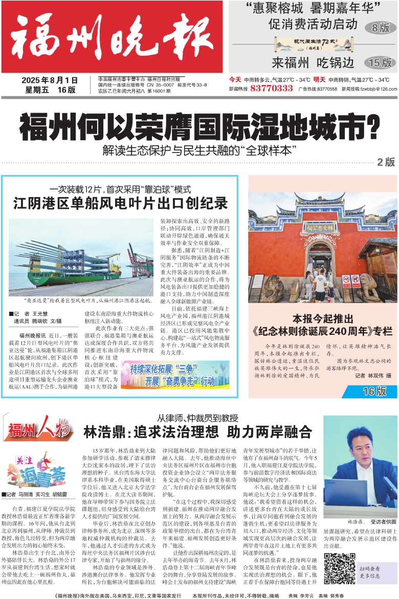 报名:福州晚报 版次:第A01版:版名:要闻·导读 日期:20250801