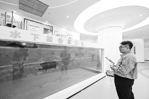 FPW6水下机器人可执行搜寻、巡检、打捞等水下作业。本报记者 池远摄