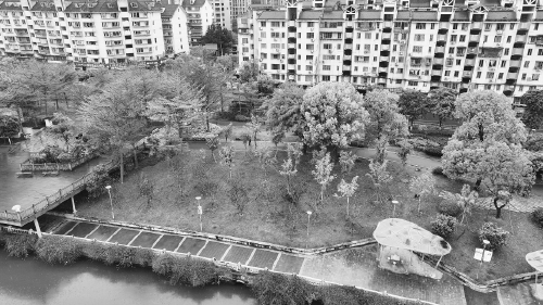 光明港龙舟渡码头对面新种了碧桃。(福州水务工程公司供图)