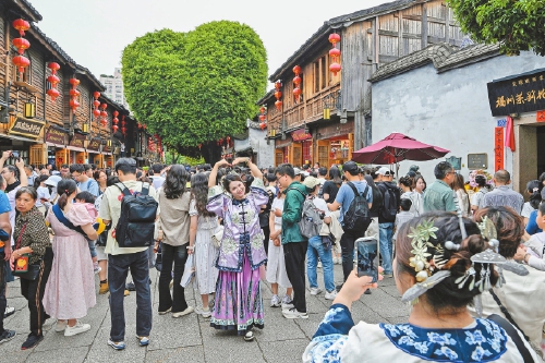 三坊七巷爱心树成为热门打卡点。本报记者 池远摄