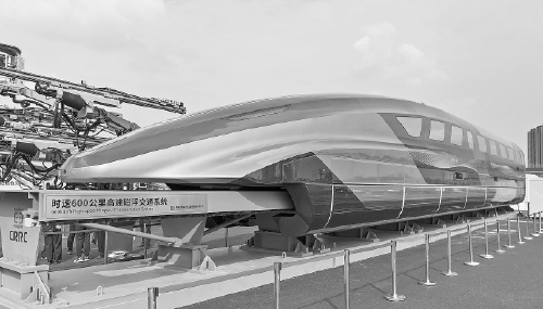 7月9日在国家铁道试验中心展区拍摄的时速600公里高速磁浮交通系统。新华社记者 才扬摄