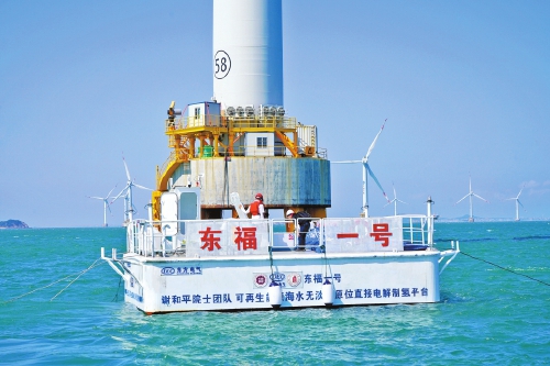 海水直接电解制氢技术海试在“东福一号”上开展。(中国东方电气集团有限公司供图)