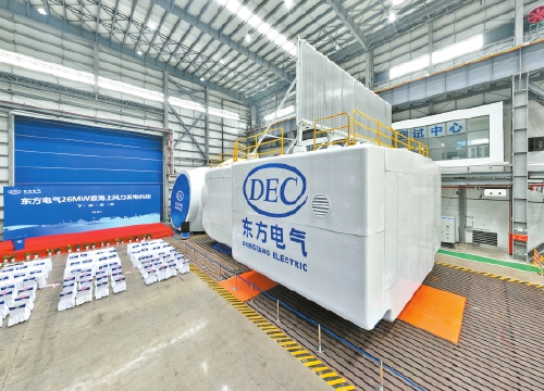 全球最大的26兆瓦级海上风力发电机组下线。本报记者 池远摄