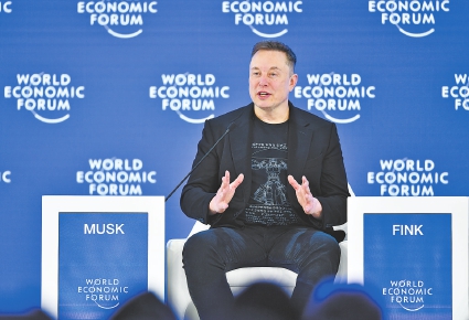 1月22日,埃隆·马斯克在瑞士达沃斯举办的世界经济论坛2026年年会上发言。新华社记者连漪摄