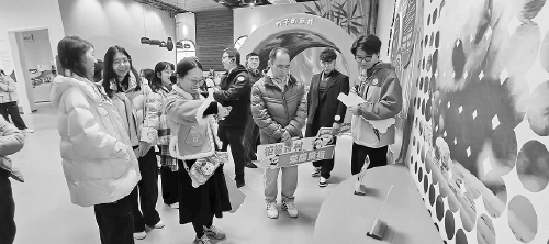 两岸青年代表在熊猫世界展厅参观。本报记者 钱嘉宜摄
