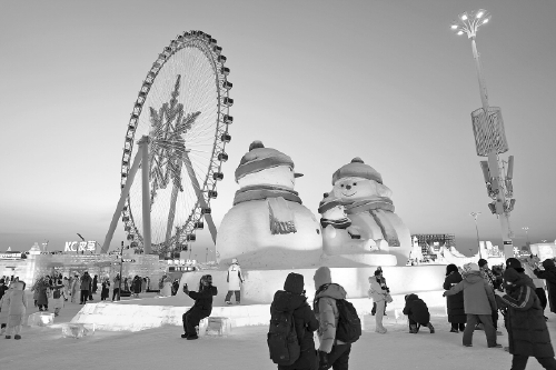 这是1月27日拍摄的哈尔滨冰雪大世界园区内的冰雪景观。寒冬时节,哈尔滨冰雪大世界园区流光溢彩,吸引了来自天南海北的游客观赏游玩,畅享冰情雪趣。新华社发