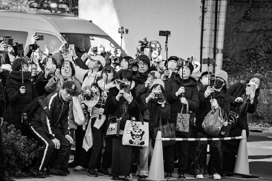 1月27日,当地民众在日本东京上野动物园外送别大熊猫“晓晓”和“蕾蕾”。