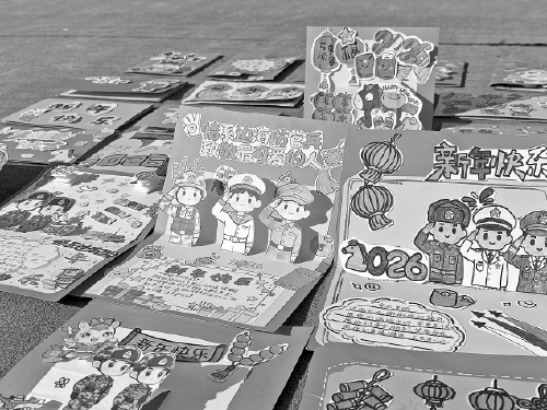学生们绘制的祝福贺卡。(市退役军人事务局供图)