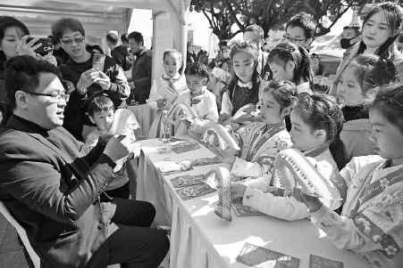 郭远峰为大家展示纸翻花技艺。本报记者 叶诚摄