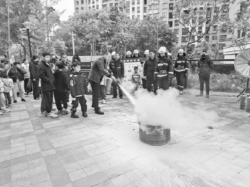 消防员教群众使用灭火器。(市消防救援支队供图)